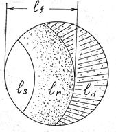 После образования и распространения усталостных микротрещин в области одного или двух зерен примерно под углом 45° к направлению растягивающего напряжения начинается стадия распространения усталостной макротрещины. На этой стадии трещина распространяется перпендикулярно к направлению приложенного напряжения. Усталостные изломы характеризуются наличием на их поверхности усталостных зон, отражающих стадийность усталостного разрушения. В общем случае, процесс развития усталостной трещины включает (рис. 13.3) стадии медленного стабильного роста трещины (зона ls), ускоренного нестабильного развития трещины (зона lr) и стадию долома (зона ld), разрушение в которой происходит по механизмам статического разрушения. Зона долома наступает при достижении усталостной трещиной длины критического значения lf (lf = ls + lr) (рис. 13.3). Зону lf называют зоной усталостного развития трещины. Количество усталостных зон и их размеры зависят, прежде всего, от количества циклов нагружения, которое выдержал образец или деталь до разрушения. Форма усталостных зон зависит от конфигурации детали и схемы приложенной нагрузки. Усталостный излом обычно прямой (по крайней мере, на стадии усталостного развития трещины) с малой степенью шероховатости и почти без признаков сопутствующей разрушению макропластической деформации.