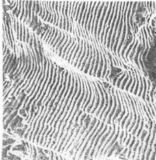 На стадии распространения за каждый цикл нагружения усталостная трещина продвигается вперед на определенное расстояние. При этом на поверхности излома, как правило, остается последовательный ряд полосок – усталостных бороздок, отражающих положение фронта трещины за каждый цикл нагружения (рис. 13.4).
