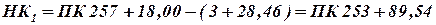 Исходные данные: Начало трассы (НТ) – ПК 250; S1 = 718, 0 м Тангенс кривой Т1 = 328, 46 м Длина кривой К1=634, 72 м Пикетаж начала (НК):
