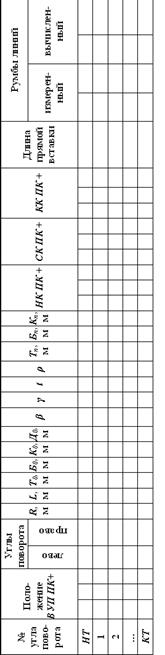 В заключении расчетов прилагаются ведомости углов поворота, длин прямых и кривых с контрольными проверками по форме, приведенной в таблице 7.