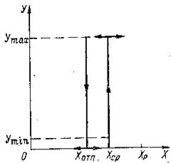Одной из основных характеристик реле является зависимость выходного параметра Y от входного X. При отсутствии входного сигнала контакты исполнительного элемента разомкнуты и ток в управляемой цепи равен нулю. При изменении входного сигнала X от нуля до некоторого его значения Хср выходной параметр Y равен нулю либо своему минимальному значению Ymin —для бесконтактных реле (рис. 5.1.1). При X ³ Хср выходная величина скачком изменяется до значения Ymах, т.е. происходит срабатывание реле. Если затем уменьшить входной параметр до Хотп, наблюдается обратное скачкообразное изменение выходной величины Y до значения Y = 0 или Y = Ymin. которое остается неизменным при дальнейшем уменьшении X. Значение входного параметра Хср, при котором происходит срабатывание реле (якорь притягивается), называется параметром срабатывания, а значение входной величины Хотп, при котором реле отключается (якорь отпадает), — параметром отпускания. Величина параметра срабатывания или отпускания, на которую настроено реле, называется уставкой. Отношение параметров отпускания к срабатыванию называется коэффициентом возврата: Отношение рабочего значения входного параметра Хр, подаваемого для срабатывания реле, к величине уставки на срабатывание называется коэффициентом запаса по срабатыванию: Параметром, характеризующим усилительные свойства реле, является коэффициент усиления по мощности: Одним из параметров релейных устройств является чувствительность. Под чувствительностью понимают ту минимальную входную величину энергии (мощности), которая еще способна вызвать скачкообразное изменение выходной величины. Применительно к электромагнитным реле чувствительность обычно характеризуется МДС срабатывания. В практике она выражается через ток или напряжение срабатывания, так как число витков для данного реле — величина постоянная. Время срабатывания — промежуток времени от момента появления входного параметра (X > Хср) на воспринимающем элементе до момента скачкообразного изменения выходного параметра. Время срабатывания t ср для контактных реле складывается из времени трогания t тр и времени движения t дв подвижных частей реле до момента воздействия на исполнительный элемент (рис. 5.1.2). Время срабатывания и отпускания реле зависит от его конструкции и схемы включения. На рис. 5.1.2, а представлена зависимость тока от времени в управляемой цепи, а на рис. 5.1.2, б — та же зависимость в управляющей цепи.