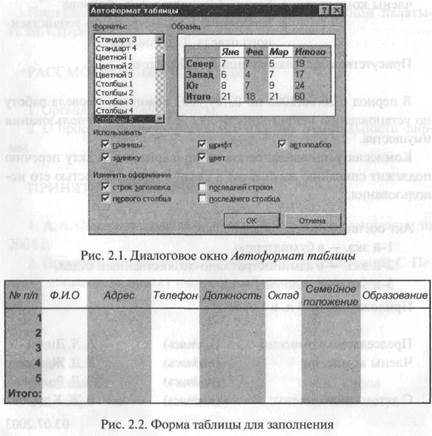 Практическая работа 2 Тема: ОФОРМЛЕНИЕ ТЕКСТОВЫХ ДОКУМЕНТОВ, СОДЕРЖАЩИХ ТАБЛИЦЫ Цель занятия. Изучение технологии создания и форматирования документов, содержащих таблицы. Задание 2.1. Создать таблицу с автоформатом, рассчитать сумму столбца. Порядок работы 1. Запустите текстовый редактор Microsoft Word. 2. Создайте таблицу (число столбцов — 8; число строк — 7) с автоформатом, пользуясь командами Таблица/Добавить/Таблица/'Автоформат/Столбцы 5 (рис. 2.1).
