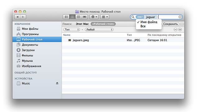 Вы можете быстро находить файлы с помощью поля поиска в окне Finder. При этом выбранный том будет просмотрен на предмет наличия искомого с помощью технологии Spotlight. Дополнительную информацию об использовании технологии Spotlight см. в статье «Основы работы с Mac: Spotlight». Благодаря сочетанию Cover Flow и Spotlight вы получите невероятно мощное средство поиска. Наведите и удерживайте указатель мыши над файлами для их визуального просмотра. Просто начните набирать текст в поле поиска — Spotlight будет динамически отображать результаты в окне Finder, а над полем поиска появится всплывающее окно с вариантами поиска, изменяющимися по мере набора текста. Вы можете задать места, где Spotlight будет осуществлять поиск, щелкнув прямо под полем поиска в окне Finder на соответствующем объекте в заголовке, например «Серверы», «Этот Mac», «Личное» и другие. Spotlight просмотрит указанное местоположение и отсортирует результаты по типу. Маркеры поиска Программа Finder в ОС OS X Lion включает в себя маркеры — новую технологию для фильтрации результатов поиска. Каждый раз при выборе предложенного результата создаётся маркер. Результаты поиска мгновенно фильтруются — вы видите только те файлы, которые соответствуют нужным критериям. Чтобы сократить количество результатов этого маркера, нажмите стрелку. Если нужно сузить круг поиска, можно использовать несколько маркеров одновременно.