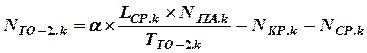 Расчет количества ТО–2 производится отдельно по видам ПА (основные, специальные и вспомогательные) по каждой марке ПА по формуле (5) с учетом среднего межремонтного пробега, определяемого по формулам (2) и (3). Полученные значения количества ТО–2 округляются по каждой марке ПА до большего целого числа. Округленные значения суммируются по видам ПА, затем определяется общее количество ТО–2.