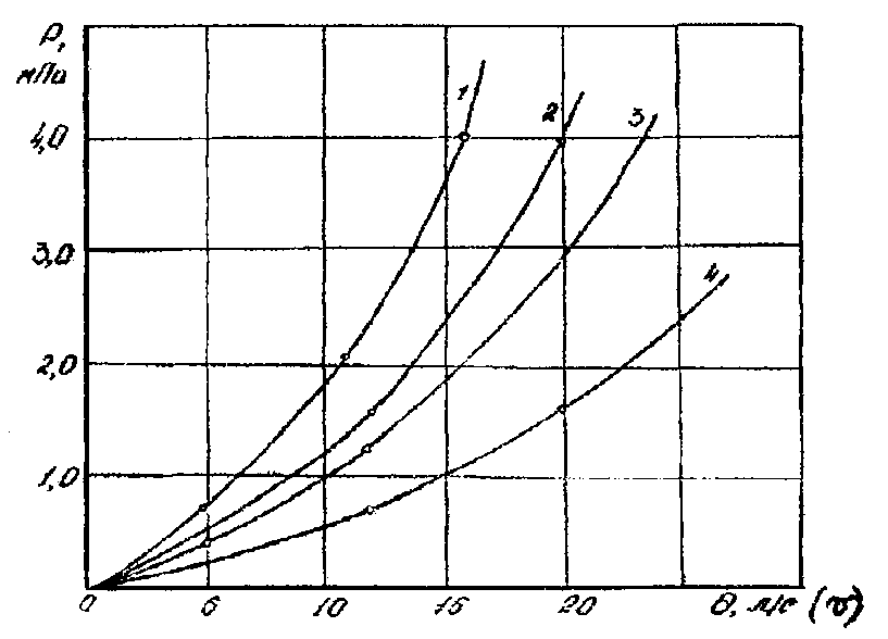 Рис. 3.2. Зависимость потерь давления в бурильных трубах от расхода различных растворов: 1 – вода; 2 – 0, 17% раствор ПАА; 3 – 0, 17% раствор ГПАА; 4 – 0, 29% раствор КМЦ