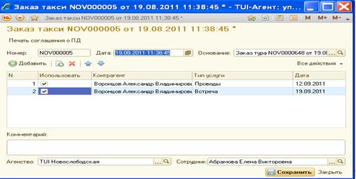 Если клиент соглашается, Вам необходимо нажать кнопку «Оформить», откроется форма заказа такси, в которой вам необходимо поставить галочку в нужной строке " Проводы" /" Встреча" ВНИМАНИЕ!!! Наличие номера мобильного телефона в карточке клиента обязательно