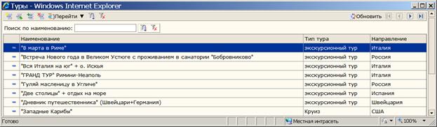 Рисунок 3 2.2. Туры Этот справочник содержит информацию об экскурсионных турах. Доступ: - меню «Справочники/Номенклатура/Туры». Вид окна «Туры» (Рисунок 4)