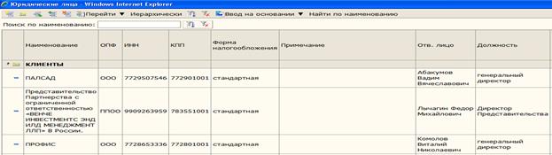 Рисунок 20 Выбор заказчика: -Поиск заказчика - юр.лица осуществляем в поле «Поиск по наименованию»: набираем – «%часть названия юр.лица», далее нажимаем кнопку Заполнение карточки нового юр.лица: После нажатия кнопки ВНИМАНИЕ!!! Все поля обозначенные звездочкой (*) являются ОБЯЗАТЕЛЬНЫМИ к заполнению при оформлении договора с юридическим лицом!