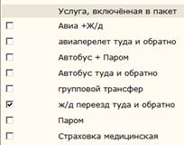 Рисунок 26 1 (Рисунок 26) – с помощью кнопки 2 (Рисунок 26) – поле «Возраст» заполняется автоматически, при необходимости можно изменить статус возраста вручную с помощью кнопки 4.5. Заполнение раздела «Услуги» На закладке «Услуги» формы «Заказ тура» при нажатии кнопки (Рисунок 27) - в списке услуг «Услуги “включено в пакет”» галочки стоят по умолчанию. Можно поменять авиаперелет на переезд по железной дороге, сняв галочку с «авиаперелета» и поставив её на «ж/д переезд». Отмеченные услуги выводятся в договор. ВНИМАНИЕ!!!! Если оформляется индивидуальный тур, то все галочки в поле «Услуга, включённая в пакет» необходимо снять.