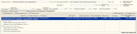 Рисунок 30 Вид формы «Заказ тура» на закладке «Услуги» при нажатой кнопке