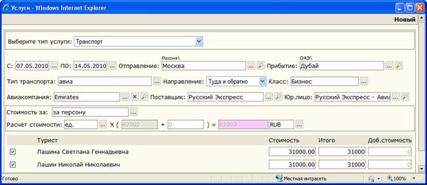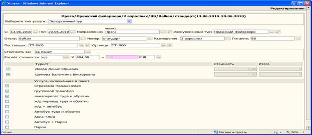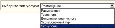 Рисунок 40 1 (Рисунок 40) - в поле «Экскурсионный тур» с помощью кнопки Остальные поля заполняются также, как при выборе типа услуги - «Размещение» (см. 4.5.1).