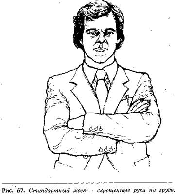 Недавно во время лекции я проделал следующий эксперимент: в начале лекции я специально начал очернять нескольких людей, хорошо известных и уважаемых среди присутствующих на семинаре. После того, как аудитория выслушала поток моих критических замечаний, я попросил их замереть в той позе, в которой они находились в момент слушания. Каково же было их изумление, когда они увидели, что 90% из них сидели, сложив руки на груди, и сделали они это сразу же после того, как началась моя словесная атака на уважаемых ими людей. Это отчетливо показывает, что большинство людей принимает эту позу тогда, когда они несогласны с тем, что слышат. Часто случается так, что общественные деятели не могут заразить аудиторию своей речью исключительно потому, что не обращают внимания на скрещенное положение их рук. Опытные ораторы знают, что при этом жесте необходимо принять меры для " потепления", " оттаивания" аудитории. Необходимо, чтобы люди приняли более восприимчивую позу и изменили свое отношение к говорящему. Когда при беседе с глазу на глаз вы видите, что ваш собеседник скрещивает руки на груди, следует сделать вывод, что вы сказали что-то, с чем ваш собеседник не согласен. Несмотря на то, что на словах он будет выражать согласие с вами. Дело в том, что невербальные средства общения не могут лгать, в то время как вербальные могут. В этот момент вы должны постараться выяснить причину его жеста и побудить человека занять более располагающую позу. Помните: до тех пор, пока человек будет держать руки скрещенными на груди, он будет сохранять отрицательное расположение. Напряженное внутреннее состояние заставляет чело-века принять этот жест, а сохранение жеста поддерживает внутреннее напряжение. Простой, но эффективный способ заставить человека разомкнуть руки - это дать ему в руки ручку, книгу, бумагу, любой предмет, беря который он вытянет руки вперед. Тем самым он примет более открытое положение, и, его отношение изменится. Можно также попросить человека наклониться вперед, чтобы получше рассмотреть какую-нибудь вещь, в результате чего он тоже разомкнет руки. Другим полезным приемом будет наклон вперед, сделанный с открытыми ладонями, и вопрос:." Я вижу, что у вас имеются вопросы. Что бы вы хотели спросить? " Или " А что вы 'думаете по этому поводу? ", а затем откинуться спиной на спинку стула, показывая, что настала его очередь для высказываний. Предъявляя ему свои ладони на обозрение, вы сообщаете невербальным способом, что хотели бы от своего партнера открытого и честного ответа. Будучи агентом по продаже, я никогда не продолжал представление своего товара после того, как видел, что мой потенциальный покупатель неожиданно сложил руки на груди, а старался выяснить причину, почему он это сделал. Более того, мне удавалось заметить, когда покупатель имел скрытое возражение, чего другие агенты никогда бы, возможно, не заметили, потому что они не обращают внимания на невербальные сигналы, говорящие о несогласии.