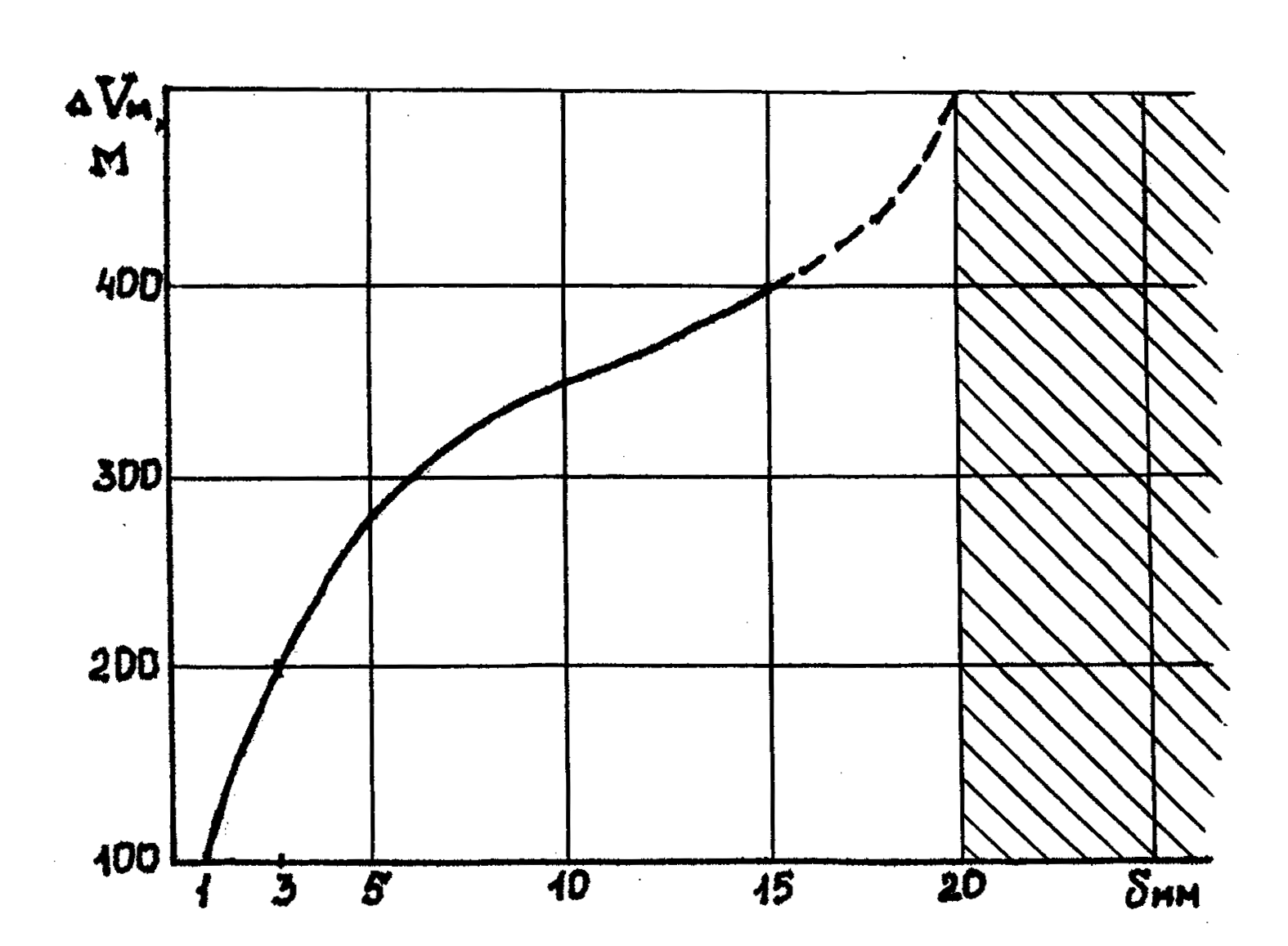 Рис. 12.1. Зависимость степени раскрытия трещин от приращения механической скорости бурени Наиболее широко распространены гидродинамические методы определения величины раскрытия трещин [41]. Для этого при различном давлении (уровне столба жидкости в скважине) определяют расход (потерю) промывочной жидкости. Затем определяют коэффициенты A=P/Q и B= = Р/Q2 и по специальным номограммам находят величину раскрытия трещин. Автором работы разработан метод определения величины раскрытия трещин по расходу двух видов промывочной жидкости (например, воды) при турбулентном режиме и при ламинарном режиме (структурированной жидкости). Для этого определяют давление на пласт трещиноватой породы Р и расход Q сначала применяемого для промывки скважины бурового раствора, затем жидкости с отличным от применяемого бурового раствора технологическими параметрами. Закачивание последней можно делать по бурильной колонне с пакером. Подставляя значения параметров в формулы (12.12) и (12.13) и решая систему двух уравнений, определяем значения d и l.