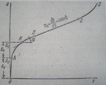 Согласно теории о ползучести вид кривой зависит от рода материала, его прочности, напряжений, температуры.