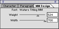 Формат Multiple Master представляет собой PostScript-шрифт, который позволяет динамически изменять такие параметры как насыщенность, ширину, начертание и оптический размер. Данные характеристики описываются в терминах линейных осей проектирования. Таким образом, Multiple Master-файл способен включать, соответственно, оси насыщенности, ширины, стиля и оптического размера. Каждая ось проектирования имеет линейный диапазон, в котором может плавно изменятся данный параметр. Например, для шрифта Myriad ось насыщенности предусматривает диапазон от 1 до 830, а ось ширины — от 1 до 700. Multiple Master-шрифты содержат базовое начертание и несколько заранее сконфигурированных комбинаций параметров осей. Для создания готовых комбинаций применяется специальная утилита Adobe Font Creator. Названия всех Multiple Master-шрифтов содержат сочетание " MM", имя гарнитуры так же заканчивается на MM с числовыми значениями параметров осей.