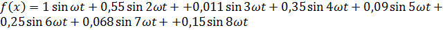 Вывод. В ходе данной лабораторной работы были обработаны данные эксперимента, с помощью метода интерполяции. По экспериментальным данным был построен график, а также была получена аналитическая функция, описывающая закон изменения измеряемой величины. Из функции видим, что первая, вторая, четвертая, шестая и восьмая гармоники наиболее высокие. Они четные. Это может проявляться из-за нагрузки аппаратов с электрической дугой, аппаратов использующих электрический разряд, например дуговые печи, люминесцентное освещение, сварочные аппараты.