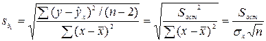 Стандартные ошибки параметров линейной регрессии определяются по формулам