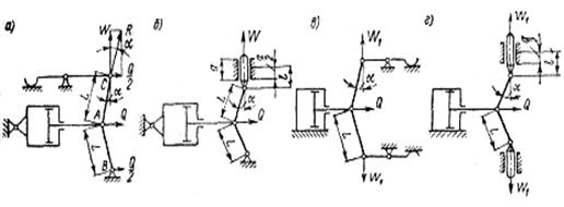 Рис. 33. Схемы двухрычажных шарнирных механизмов: а, б— одностороннего действия; в, г — двустороннего действия