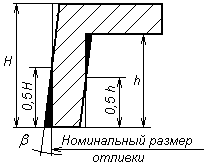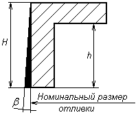 в) г) Рисунок 2.1 - Формувальні ухили Формувальні ухили не повинні міняти характер затвердіння виливка. Розміри ухилів для форм із піщано-глинистих сумішей і форм, що твердіють у контакті з оснасткою, наведені в таблиці 2.4. Ухили вказуються величиною кута, вираженої в градусах.
