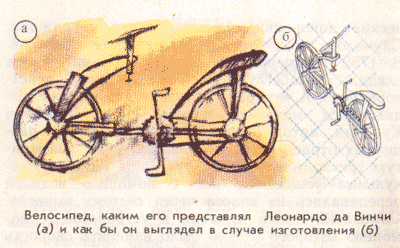 И правда - кто? Полного согласия в этом вопросе до сих пор нет. Идея ездить, используя только мускульную силу самого человека, возникла давно. Гениальный итальянский художник и мыслитель Леонардо да Винчи, живший 4 века тому назад, сделал эскиз экипажа, очень похожего на современный велосипед. У него были два одинаковых по размеру колеса, руль, седло и педали. А реализация идеи была предопределена развитием науки и техники. Почему велосипед получил такое название? По латыни " velox" значит " быстрый" и " pedis" - " ноги". Вот и получилось " велосипед", то есть " быстроногий". Прежде чем велосипед приобрел современный вид, ему пришлось пройти долгий и трудный путь исканий, открытий и заблуждений. Мысль об изготовлении конструкции, состоящей из двух одноколейных колес, соединенных между собой рамой, приходила в голову многим изобретателям в разных странах и частях света. Считается, что первый велосипед появился в 1808 г. в Париже. Он состоял из деревянной перекладины, соединяющей два колеса. Руля и педалей у него еще не было. Ехать на нем можно было только сидя на перекладине и отталкиваясь от земли ногами. Спустя всего 5 лет лесничий из Германии Карл фон Драйз усовершенствовал эту конструкцию, сделав ее переднее колесо управляемым. Внес свою лепту в совершенствование велосипеда простой рабочий - медник Дальзель. Чтобы не отталкиваться от земли ногами, он придумал рычажную передачу на ось переднего колеса. Седок попеременно двигал эти рычажки руками, тем самым приводя в движение велосипед. Но руки оказались слабыми помощниками. Тогда Дальзель заменил рычажки педалями для ног. Данное усовершенствование привлекло внимание к конструкции фабрикантов, которые увидели в ней оригинальную детскую игрушку. Они сделали его трехколесным, добавив для устойчивости сзади еще одно колесо. Но по- прежнему велосипед был редким. Делали его из дерева. Велосипед, полностью выполненный из стали, появился в Европе в 1865 г. Его сконструировали французские механики Мишо и Лальман. Единственными деталями из дерева оставались колеса, которые были обтянуты железным ободом. В первое время переднее колесо изготавливалось больше заднего. Его диаметр достигал 1, 6 м, а велосипед из-за этого получил название " Паук". Масса таких велосипедов достигала 35 кг, скорость же составляла 12-20 км/ч. По свидетельству современников было далеко не простым делом не только садиться на него, но и ехать. Еще одно усовершенствование внес в 1869 г. англичанин Коупер. Им были применены шариковые подшипники, которые давали возможность существенно облегчить ход велосипеда. Почему на велосипеде долгое время переднее колесо было больше заднего? Во- первых, для увеличения скорости движения, так как чем больше диаметр колеса, тем меньше оборотов ему нужно совершать. Во-вторых, так можно было уменьшить тряску. Но если постоянно увеличивать диаметр переднего колеса...- посудите сами. В конце концов, стало трудно дотягиваться до педалей, расположенных на нем. Велосипед как бы заехал в тупик. Ездить на нем становилось все опаснее. Любой наезд на препятствие - и велосипедист, теряя равновесие, опрокидывался вперед и летел через колесо головой вниз. Устранить этот недостаток помогло появление в 1884 г. велосипеда с двумя низкими одинаковыми колесами, длинной рамой и цепной передачей на ось заднего колеса. Новая конс