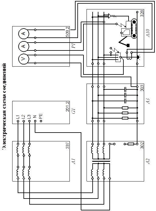 · Убедитесь, что устройства, используемые в эксперименте, отключены от сети электропитания. · Соедините гнезда защитного заземления " · Соедините аппаратуру в соответствии с электрической схемой соединений. · Включите источник G1 и питание блока мультиметров Р1. · Режим глухозаземленной (изолированной) нейтрали питающей электрической сети моделируйте установкой (отсутствием) перемычки между гнездом нейтральной точки трансформатора и гнездом сопротивления заземлителя R0 в блоке трехфазного трансформатора А2. · Замыкание фазы на корпус электрооборудования моделируйте установкой перемычки между гнездами 3 и4 модели А10. · Токи короткого замыкания измеряйте с помощью амперметров блока мультиметров Р1, включенных между гнездами 5, 6 и 7, 8 модели А10. · Напряжения на корпусах электрооборудования и экскаватора измеряйте с помощью вольтметра блока мультиметров Р1, включая его между гнездами 1, Е и 2, Е модели А10. · Грунт, в котором проложен заземлитель, характеризуется удельным электрическим сопротивлением ρ 1, а грунт, на котором стоит экскаватор, - удельным электрическим сопротивлением ρ 2. · По завершении эксперимента отключите источник G1 и питание блока мультиметров Р1. 8. Натурное моделирование защитного отключения электрической сети