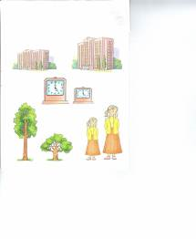 1.Посмотрите на изображения предметов. Обратите внимание на их размер. 2.Я буду называть предметы различного размера, а вы их показывайте. Вспомните, что бывает такого же размера. (Маленький-стульчик, камушек, чайничек и т.д.; средний-кубик, дуб и т.д.; большой-слон, нос, окунь).