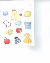 1.Посмотрите на кляксу каждого цвета и назовите его. (Голубой, жёлтый, оранжевый, серый, синий, красный, зелёный, коричневый, розовый, чёрный) 2.Я буду называть различные цвета, а вы их показывайте. Вспомните, что бывает такого же цвета. (Голубой (ая, ое, ые)-небо, незабудки, платье, чашка, шарф и т. д.)