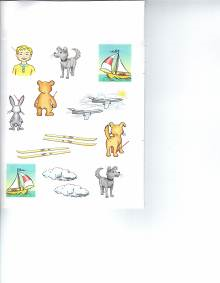 1.Посмотрите на изображения предметов и их расположение. Назовите предметы и их расположение. (Правое ухо, верхнее облако, задняя лапа и т.д.) 2.Я буду называть различно расположенные предметы, а вы их показывайте. (Собака, смотрящая влево, вправо. Нижний самолёт. Верхнее облако.) Вспомните, что может быть так расположено. (Заднее дерево, правое ухо, указательный палец и т.д.)