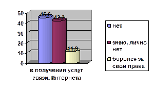 На вопрос: «Сталкивались ли Вы с нарушением своих прав?», ответы распределились следующим образом: - боролись за свои права в трудовых отношениях (25%), в медицине (24%), в торговле, общественном питании, бытовых услугах (23%); - знают, но лично не сталкивались в охране правопорядка (56%), в сфере ЖКХ (55%), в сфере образования (54%) (подробнее см. Приложение, таб. 48 – 55). Оценка частоты встречаемости нарушений прав молодежи в различных сферах деятельности (в % от общего числа)