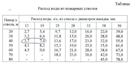 Таблица 3.8 Потери напора в одном рукаве при полной пропускной способности воды