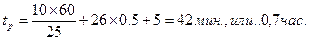 Городской маршрут протяженностью 10 км обслуживают автобусы вместимостью qн – 80 пассажиров; nпо = 26; tпо = 0, 5 мин; tко = 5мин. По данным изучения пассажиропотоков, Qсут =68 000 пассажиров; Тм. = 14 ч; Vт = 25 км/ч; γ вм =0.85; lcР = 4 км. Сколько автобусов потребуется для освоения данного пассажиропотока? Р е ш е н и е 1. Время, затрачиваемое автобусом на один рейс: