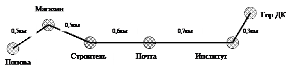 Рис. 1 Схема автобусного маршрута Гор. ДК – Попова Таблица А. Данные анализа пассажиропотоков (для всех вариантов)