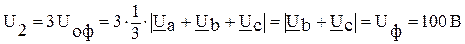 Рисунок 1.18 Векторная диаграмма напряжений при однофазном замыкании на землю в сети с изолированной нейтралью Напряжение на выходных зажимах разомкнутого треугольника U2 = 3Uоф = 3Uф норм. реж. Для того, чтобы при однофазном замыкании на землю в сети с изолированной нейтралью напряжение, подаваемое на реле, не превышало 100В, у ТН, предназначенных для работы в данных сетях, вторичные обмотки, соединённые в разомкнутый треугольник обеспечивают увеличенный коэффициент трансформации, например,