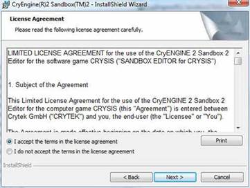 Запуск программы установки. Дважды щелкните по программе CryEngine®2 Sandbox 2.msi, чтобы начать процесс установки.
