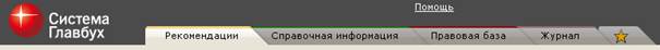 В разделе «Правовая база» дополнительно действует поиск документа по реквизитам, ставший привычным для справочно-правовых систем, и дополнительный поиск по аттачментам. Ознакомимся с каждым видом поиска в разделах «Системы Главбух» более подробно. 3.1. Раздел «Рекомендации» При входе в Систему по умолчанию открывается Стартовое окно главного раздела Системы — раздел «Рекомендации». С помощью закладок вверху экрана можно перейти к материалам других разделов («Справочная информация», «Правовая база», «Журнал», «Избранное»).