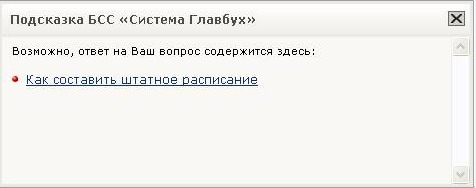 Если по итогам рассмотрения установлено, что ответ был подготовлен некачественно, клиенту в течение 8 часов (рабочих) с момента получения претензии направляется новый ответ на вопрос. Если по итогам рассмотрения установлено, что ответ был подготовлен качественно, но клиенту требуются пояснения, они даются по телефону в течение 4 часов (рабочих) с момента получения претензии. «Горячая линия» в новом свете! В БСС «Система Главбух» представлена уникальная услуга, недоступная ни одной из ныне существующих СПС, - «ПОМОЩЬ ЭКСПЕРТА». Пользователь никогда не остается наедине со своей проблемой. Если в течение 15 минут клиент продолжает поиск по одной теме, а результаты поисковой выдачи не удовлетворяют, на экране эксперта службы «Горячая линия» БСС «Система Главбух» появляется предупреждение, что данному пользователю необходима помощь. Эксперт анализирует запрос в поисковой строке, делает подборку рекомендаций чиновников из материалов БСС в виде гиперссылок на нужные материалы и отправляет пользователю. На практике это выглядит как всплывающее окно на компьютере пользователя с подсказкой «возможно, Вы ищете это». Пример всплывающей подсказки: