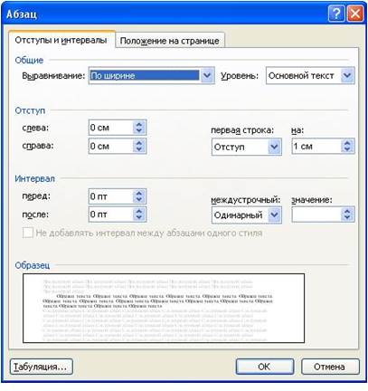В разделе Интервал в раскрывающемся списке междустрочный можно выбрать вид интервала, в счетчике значение при необходимости можно установить требуемую величину. Межстрочный интервал может быть установлен количеством строк: Одинарный, Полуторный, Двойной, Множитель. При установке режима Множитель в счетчике значение следует указать число строк интервала. Во всех этих случаях величина межстрочного интервала зависит от размера выбранного шрифта. При выборе интервала Точно в счетчике значение следует указать значение интервала. Такой интервал не будет изменяться при изменении размера шрифта. При выборе интервала Минимум в счетчике значение следует указать минимально допустимое значение интервала. Это означает, что для шрифтов указанного размера и менее будет установлено именно такое значение интервала, а для более крупных шрифтов интервал будет одинарным. Для установки интервалов между абзацами в разделе Интервал (рис. 26) в счетчиках перед и после установите требуемые величины.