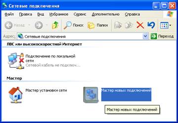 3. Дважды «щелкните» по ярлыку «Мастер новых подключений». Запустится специальная программа (Мастер), которая позволяет настроить новое подключение к сети.