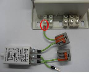 1.2 Прикручиваем свободный проводок из клеммника к клеммнику дросселя под обозначением L (как показано на рисунке №4) 1.3 Центральный проводок на ИЗУ прикручиваем к клемме дросселя под обозначением D (как показано на рисунке №5)