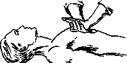 Рис. 13. Проведение отрывистого удара по грудине. а б в Пальцы не должны прикасаться к грудной клетке (рис. 14 в). Усилием всего тела, с помощью рук, толчкообразно надавливаем на грудину, чтобы она продавливалась на 3-5 см. В положении максимального прогиба ее нужно сдерживать чуть меньше секунды. Важно, чтобы нажатия осуществлялись строго перпендикулярно грудине, чтобы не повредить ребра. Если нажимать на ребра, они могут сломаться и повредить легкие, печень и селезенку. Осуществляя нажатие, не сгибайте свои руки в локтях. Когда нажим прекращаете, ладони не отрывайте от грудины. Надавливать на грудину нужно не силой рук, а тяжестью тела. Это сохраняет Ваши силы при оказании помощи. У детей сила нажатия на грудину и место приложения силы варьируют в зависимости от возраста ребенка: у детей грудного возраста массаж производят ладонными поверхностями первых пальцев, а у подростков одной рукой (рис. 15).