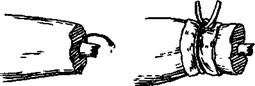 Помните, что жгут при артериальном кровотечении накладывать выше места кровотечения, предварительно приподняв конечность. В области запястья и на лодыжках жгут накладывать бесполезно. Рис. 21. Применение импровизированного жгута.