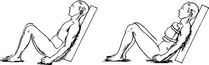 В тех случаях, когда нет переломов конечности, можно применить способы остановки кровотечения путем максимального сгибания конечности (рис. 22). Сильное сгибание в колене останавливает кровотечение из артерий стопы и голени. Для усиления давления на сосуд используется валик из бинта или другой материи. Сильное сгибание и приведение колена к животу сдавливает бедренную артерию. При ранении подмышечной артерии сдавление осуществляется приемом, также представленным на рисунке: руку закладывают за спину и сильно оттягивают в здоровую сторону, либо обе руки, согнутые в локте, сильно отводят назад, и локтевые суставы связывают за спиной. Такой метод остановки применяется очень редко. Рис. 22. Способы временной остановки кровотечений конечностей. Как остановить кровотечения в других местах тела, не на конечностях? Если Вы видите сильно бьющую (фонтанирующую) струю крови там, где жгут наложить невозможно, что делать? Не теряйтесь, делайте следующее: — зажмите пальцами рану для остановки кровотечения; — положите пострадавшего горизонтально; — срочно пошлите кого-либо за «скорой помощью»; — если начнете уставать, пусть кто-либо из присутствующих прижмет Ваши пальцы сверху. При кровотечении из главной шейной артерии (сонной) следует немедленно сдавить рану пальцами или кулаком, и после этого набить большим количеством чистой марли. Этот способ называется тампонированием. После перевязки кровоточащих сосудов пострадавшего следует напоить безалкогольным напитком и как можно скорее доставить в больницу. Что делать при подозрении на внутреннее кровотечение? Такое кровотечение может возникнуть при ударе в живот вследствие разрыва печени или селезенки. В том случае, когда пострадавший жаловался на сильную боль в животе после имевшего место удара, или он потерял после удара в живот сознание, следует думать о возможности внутреннего кровотечения (в брюшную полость). Переведите пострадавшего в полусидячее положение с согнутыми в коленях ногами (рис. 23 а), а на область живота положите холодный компресс. Нельзя давать ни пить, не есть. Срочно организовать доставку в больницу. При сильном ударе в грудную клетку может возникнуть внутреннее кровотечение в плевральную полость. Если был такой удар и пострадавший дышит с трудом и начинает задыхаться, следует придать ему полусидячее положение с согнутыми нижними конечностями и на грудную клетку положить холодный компресс (рис. 23 б). а б Как поддержать жизнь человека, потерявшего много крови? В результате кровопотери в организме человека происходят изменения, которые могут стать необратимыми и привести к смерти. Поэтому для поддержания жизни человека, потерявшего много крови, необходимо принять срочные меры. После того, как Вы остановили кровотечение (либо оно само спонтанно остановилось), на рану обязательно надо наложить давящую повязку. Затем пострадавшего освободить от сдавливающей одежды для облегчения дыхания (расстегнуть, снять). Если человек в сознании, и у него отсутствуют ранения в области живота, следует напоить его сладким чаем, уложить на спину так, чтобы ноги были подняты, а голова опущена. Такая поза поддержит снабжение головного мозга кровью, мозг наиболее чувствителен к ее недостатку. Следует как можно быстрее организовать отправку пострадавшего в больницу.