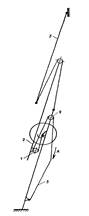 При необходимости прекратить выдвигание колен лестницы Л-60 снимают усилие силовой веревки, и валик останова с крюком захвата под действием возвратной пружины вернется в исходное положение. Возвращенный в исходное положение крюк подхватит одну из ступеней, опускающихся под действием собственной массы колен лестницы, обеспечив их останов и надежную фиксацию. Рис. 1.15 Принципиальная схема выдвигания и останова колен лестницы Л-60 1 — подвижный блок; 2 — второе колено; 3 — третье колено; 4 — неподвижный блок; 5 — силовая веревка; 6 — рычаг; 7 — возвратная пружина; 8 — валик останова; 9— крюк захвата ступеней. Для сдвигания колен лестницы необходимо сначала при помощи силовой веревки их несколько приподнять, а затем, постепенно уменьшая усилие на веревке, обеспечить плавное сдвигание колен лестницы. Третье, верхнее, колено 5 выдвигается так же, как и в лестнице Л-ЗК. Верхнее колено 3 выдвигается одновременно со вторым при помощи троса, перекинутого через блок второго колена. Один конец троса прикреплен в верхней ступени колена, а второй закреплен за нижнюю ступень верхнего колена. При движении блок второго колена давит на трос и заставляет выдвигаться верхнее колено со скоростью, в 2 раза больше скорости второго колена.