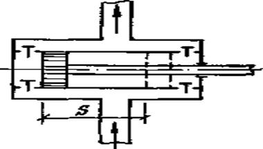 Щелевые уплотнения (переднее и заднее) между рабочим колесом и корпусом насоса выполнены в виде уплотнительных колец из бронзы (Бр ОЦС 6-6-3) на рабочем колесе (напрессовка) и чугунных колец в корпусе насоса. Уплотнительные кольца в корпусе насоса закреплены винтами. Уплотнение вала насоса достигается применением пластичной набивки или каркасных резиновых сальников, которые размещены в специальном уплотнительном стакане (рис. 5.12). Стакан прикреплен к корпусу насоса болтами через резиновую прокладку. Болты через специальные отверстия зафиксированы проволокой во избежание их раскручивания. При использовании в уплотнении вала пластичной набивки ПЛ-2 существует возможность восстановления герметизации узла без его разборки и замены деталей. Это осуществляется путем прессования набивки винтом. При использовании для уплотнения вала насоса каркасных сальников АСК-45 и их замене необходимо помнить, что из четырех сальников один (первый к рабочему колесу) работает на разрежение и три — на давление. Для распределения смазки в сальниковом стакане предусмотрено маслораспределительное кольцо, которое соединено каналами со шлангом и пресс-масленкой. Водосборное кольцо стакана соединено каналом с дренажным отверстием, обильная утечка воды из которого указывает на износ сальников. Полость в корпусе насоса между уплотнительным стаканом и сальником муфты фланца служит масляной ванной для смазки подшипников и привода тахометра. Вместимость масляной ванны 0, 5 л. Масло заливают через специальное отверстие, закрываемое пробкой. Сливное отверстие с пробкой находится в нижней части корпуса масляной ванны. Воду из насоса сливают путем открытия крана, расположенного в нижней части корпуса насоса. Для удобства открывания и закрывания крана его рукоятка удлиняется рычагом.