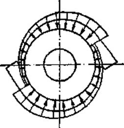 Рис. 5.9. Эпюра радиальных сил, действующих на рабочее колесо насоса с двумя отводами.