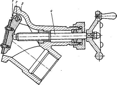 Рис. 5.13. Напорная задвижка коллектора насоса ПН-40УА 1 — клапан; 2 — ось; 3 — корпус; 4 — шпиндель