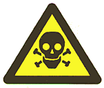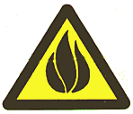 Предупреждающие знаки помещают обычно в треугольник с толстыми внешними линиями. Например, предупреждение о легковоспламеняющейся жидкости - это язык пламени в центре треугольника. Так же помещен трилистник, предупреждающей о радиационной опасности. Восклицательный знак в треугольнике «Осторожно! Прочие опасности» применяется, когда причина опасности не известна.