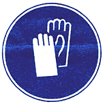 Предписывающие знаки размещаются внутри двойной окружности. Внутренний круг затемнен и только внутри показаны контрастным (белым) цветом тот предмет, о чем предписывается. Например, костюм в знаке под названием «Работать в защитной одежде» или рукавицы в знаке «Работать в защитных рукавицах».