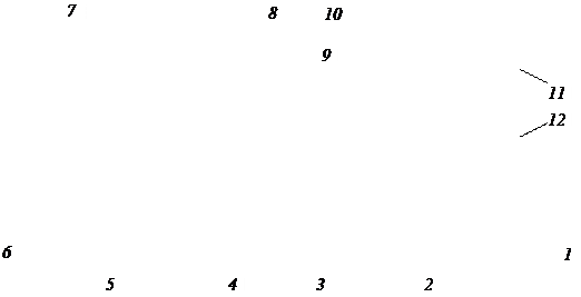 Рис. 11.17. Пневматическая схема: 1 – ресивер; 2 – кран управления; 3, 4, 6 – электромагнитный клапан;