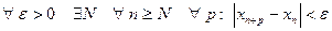 Теорема (критерий Коши). Для того, чтобы последовательность имела конечный предел, необходимо и достаточно, чтобы она была фундаментальной. Для того, чтобы последовательность не имела конечного предела, необходимо и достаточно, чтобы она не удовлетворяла условию Коши, т.е. удовлетворяла отрицанию условия Коши: существует такое